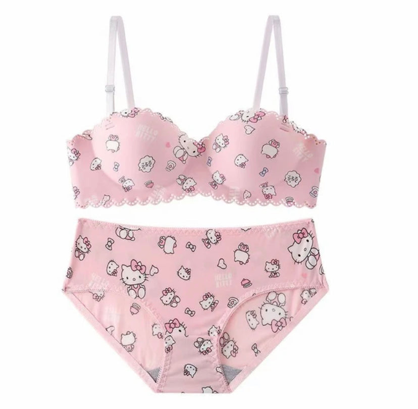 Sanrio Bra Set Hello Kitty Kawaii Sweet Underwear Panties and Bra Set Push-Up Bra Comic Underwear Sexy Pure Desire Bra Girl Gift